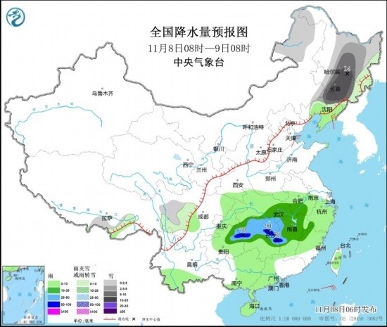 中新網(wǎng)11月8日電 據(jù)中央氣象臺網(wǎng)站消息,預計8日至9日,黑龍江中南部、吉林中西部、遼寧北部等地有暴雪和低溫冰凍災害風險,關注對交通運輸、建筑設施安全、農(nóng)牧業(yè)、電力通信等的影響;湖南、江西、浙江、福建等地降雨較強,注意防范次生災害。