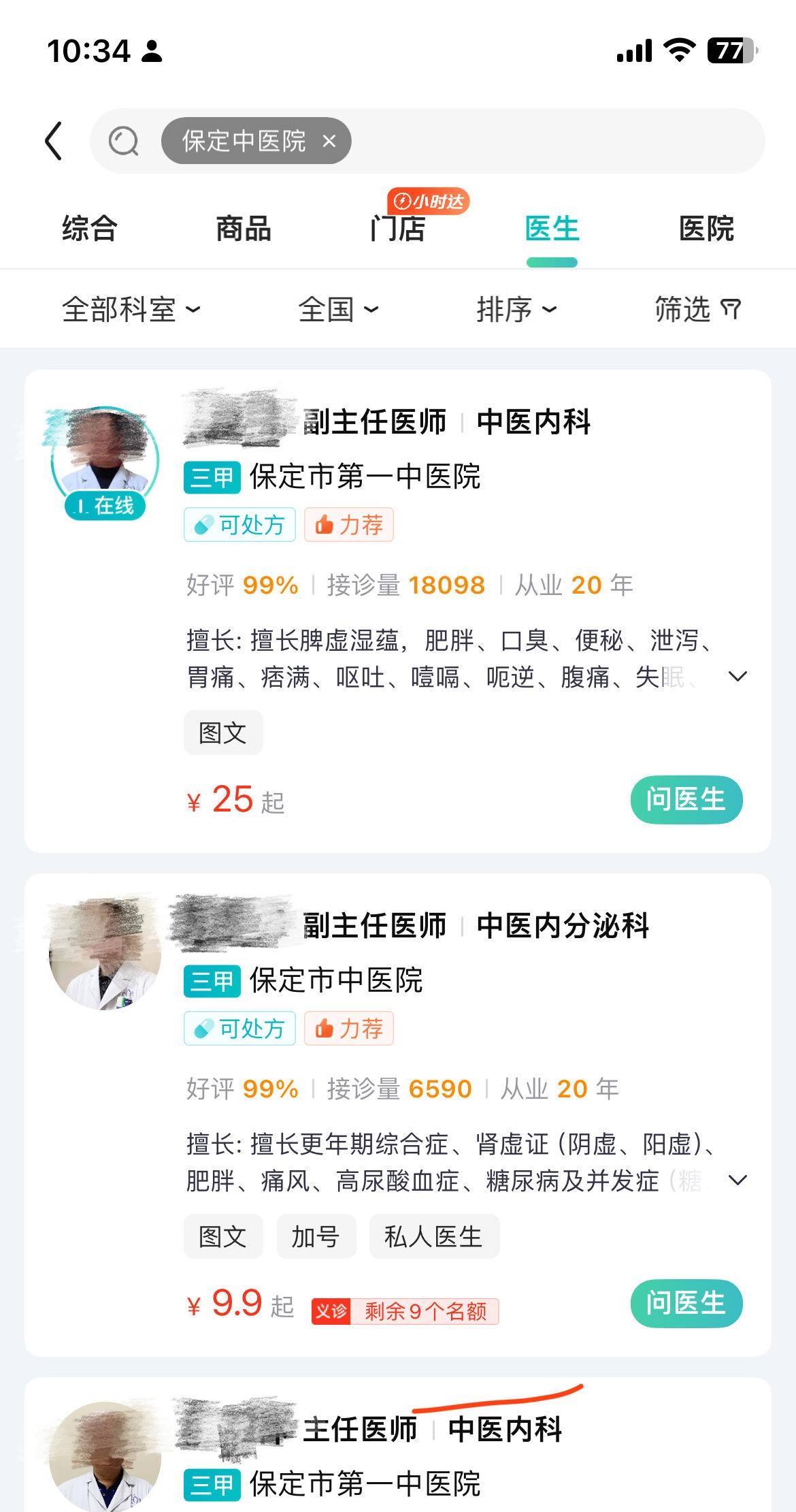 記者搜索互聯(lián)網(wǎng)投訴平臺黑貓投訴發(fā)現(xiàn),不少互聯(lián)網(wǎng)醫(yī)療APP都存在類似的科室錯誤標注、醫(yī)院錯誤標注的問題?;颊邊窍壬ㄟ^百度健康向腫瘤科分項的腫瘤內科醫(yī)生問診,顯示的接診醫(yī)生來自北醫(yī)三院,按姓名在醫(yī)院官網(wǎng)進行查詢,吳先生發(fā)現(xiàn)對方是腫瘤放療科醫(yī)生:我是在互聯(lián)網(wǎng)上咨詢問診,我問的是腫瘤內科。他有標記腫瘤內科,我們問診的人,就會認為他就是腫瘤內科的醫(yī)生,我查到了醫(yī)生他是在北醫(yī)三院,他是放療科的醫(yī)生。