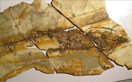 圖為此次發(fā)現的劍龍類恐龍化石。新華社記者曹國廠 攝