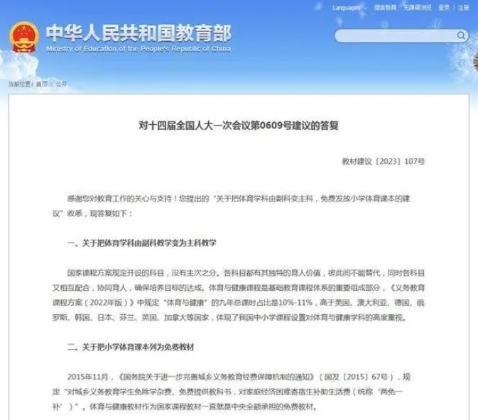 ·體育由副科變主科?教育部答復(fù)代表:無主次之分。