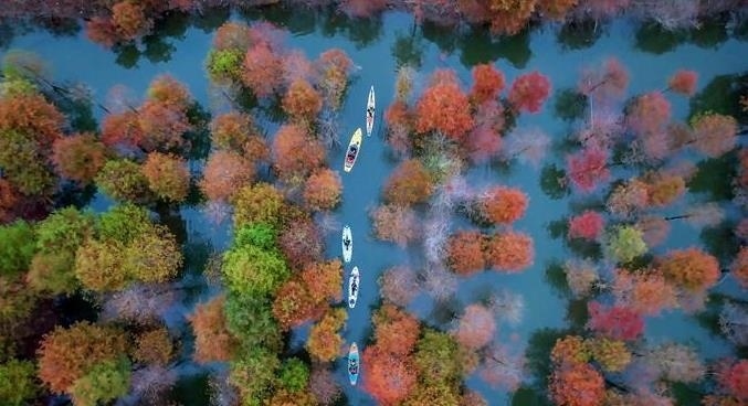 近日,位于安徽省寧國市方塘鄉(xiāng)的兩千余畝落羽杉林迎來了一年中最美的時節(jié)。一叢叢紅杉林與清澈的湖水相互掩映,充滿詩情畫意。