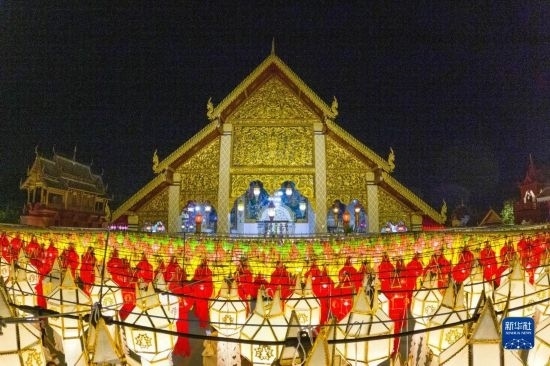 近日,泰國南奔府在哈利奔猜寺舉辦盛大燈會,吸引游人紛紛前來掛燈留影、祈福許愿。