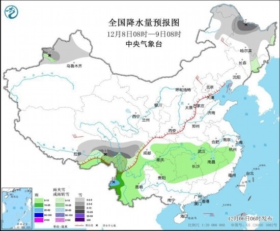全國降水量預報圖(12月6日08時-7日08時)