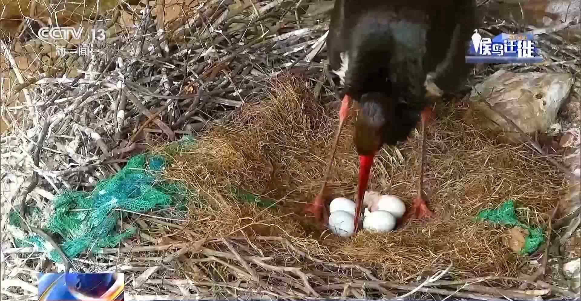 監(jiān)控記錄到了黑鸛夫妻孵蛋育雛,到小黑鸛出生,再到夫婦倆捕魚喂食黑鸛寶寶,見證了黑鸛筑巢繁衍后代的過程。