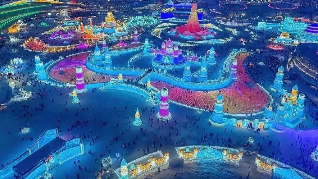 夜色中的冰雪大世界美輪美奐。圖源:哈爾濱冰雪大世界
