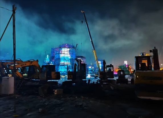 夜間的冰雪大世界園區(qū)施工現(xiàn)場(chǎng)。圖源:受訪者供圖