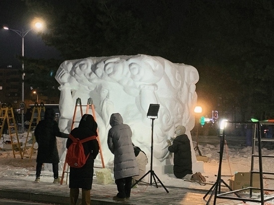 能夠與冰雪“親密接觸”,中國美術(shù)學(xué)院的熊竣苓要感謝剛剛在哈爾濱落幕的第十六屆國際大學(xué)生雪雕大賽。他所在的團(tuán)隊(duì)由包括他在內(nèi)的4位南方同學(xué)組成,他們創(chuàng)作的雪雕作品《盤古開天》獲得了一等獎(jiǎng)。這段比賽經(jīng)歷讓第一次去哈爾濱的熊竣苓非常難忘,“最近哈爾濱很火,雖然我是去參加比賽的,但能去哈爾濱一趟,也非常激動(dòng)了。我記得我們從機(jī)場(chǎng)到酒店的路上,透過車窗看到了霧凇,一下子就讓我這個(gè)南方人感受到了北方冬天的美。”他回憶,做雪雕時(shí),他和另外3位同學(xué)都既緊張又興奮,“我們都是第一次觸摸雪做雕塑,此前在學(xué)校練習(xí)時(shí)是用泥巴或石膏,跟雪是完全不同的質(zhì)感,所以過程中我們都小心翼翼,非常緊張;同時(shí),我們都是第一次見到這么多雪,太激動(dòng)了?!?/p>