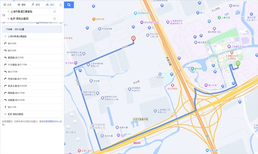 “途經(jīng)滬青平公路時,平臺也愛規(guī)劃逆行路線?!标愱栮柼峁┑牡?條逆行路線正屬于這一情況。這是從京華路187弄送往南山雨果小區(qū)的一單,平臺規(guī)劃的路線中,指示騎手從明珠路右拐進入滬青平公路向西騎行至葉聯(lián)路再向南。可是,滬青平公路在葉聯(lián)路路口處沒有過街橫道線,此時,平臺索性規(guī)劃騎手沿著滬青平公路南側(cè)逆向騎行。1月8日,記者實地走了一遍這段路線:若騎手沿著滬青平公路北側(cè)騎行,需一直向西騎到徐盈路才能過街,再沿著滬青平公路南側(cè)向東抵達葉聯(lián)路。手機顯示,繞行路線比美團平臺規(guī)劃路線遠了1.2公里。