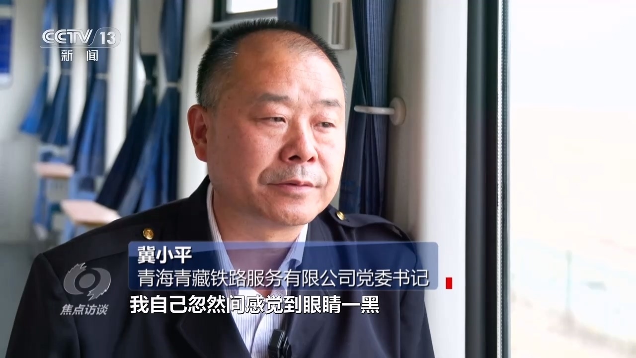 青海青藏鐵路服務(wù)有限公司黨委書(shū)記冀小平:“2009年11月份的一天,我們配送到最后一個(gè)站唐北站的時(shí)候,我忽然感覺(jué)眼睛一黑,有五六分鐘大腦一片空白?!?/p>