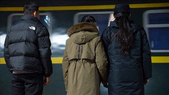 14號車廂內(nèi),來自黑龍江省齊齊哈爾市泰來縣的王興海和陳玉倩望著車窗外、站臺上的王靚怡,喜笑顏開??缭?700多公里、歷時52個小時,只為給女兒一個驚喜,陪她在崗過年。