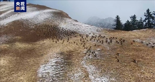 近日,甘肅祁連山國(guó)家級(jí)自然保護(hù)區(qū)寺大隆自然保護(hù)站管護(hù)人員利用無(wú)人機(jī)巡護(hù)時(shí),拍攝到一大群巖羊在雪地覓食、追逐,據(jù)管護(hù)人員目測(cè)達(dá)200多只。