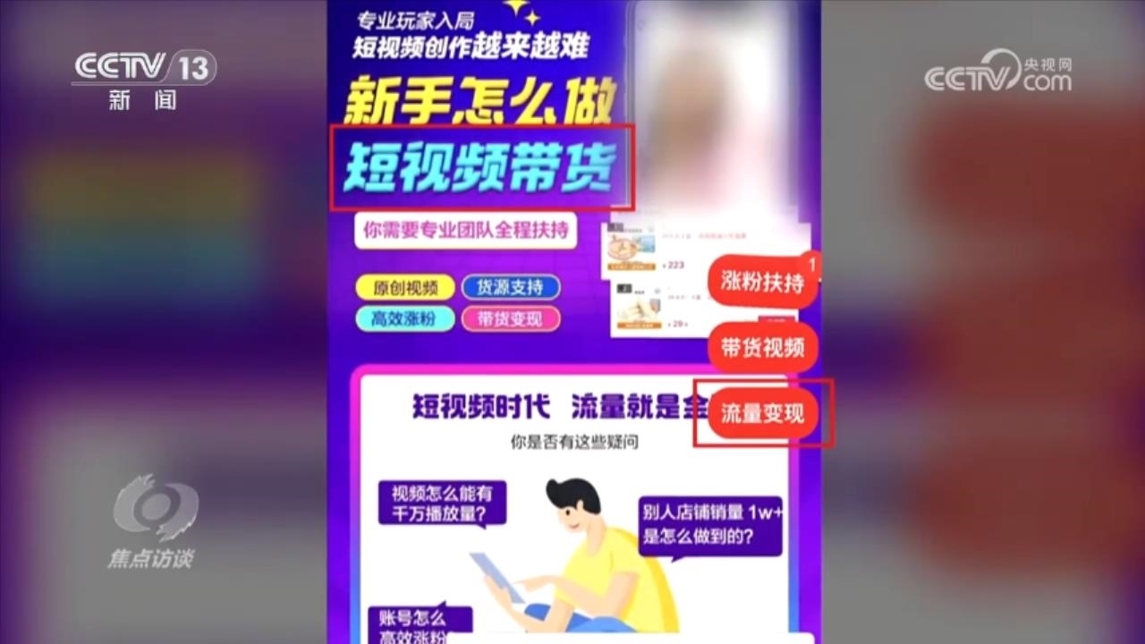 通過制作優(yōu)質(zhì)短視頻吸引粉絲并帶貨,這本身無可非議,但是在利益誘惑下,一些短視頻的博主卻不惜造假來擺拍各種博人眼球的視頻,獲取流量變現(xiàn),而有些短視頻帶貨的培訓(xùn)機(jī)構(gòu)推出的漲粉技巧更是包括“顛覆認(rèn)知”“制造對(duì)立”“抄襲素材”等不正當(dāng)手段。