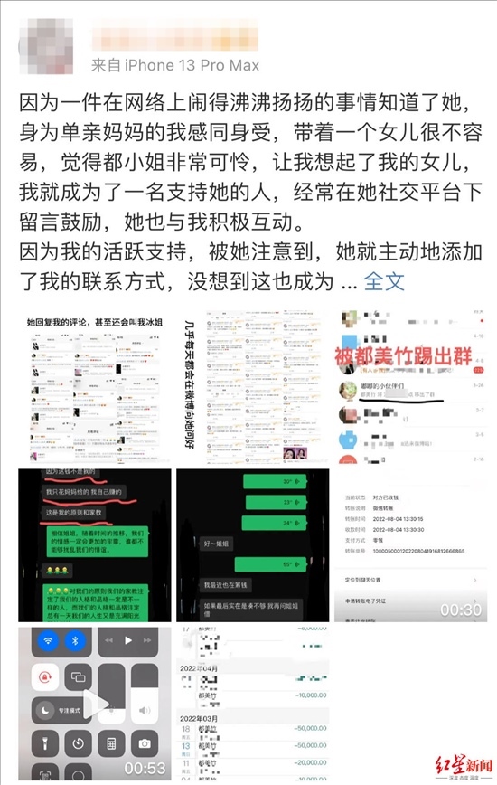 單親媽媽為支持都美竹轉(zhuǎn)賬19萬余元欲全部追回 聊天記錄曝光