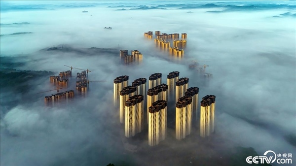 2024年4月26日,四川資陽(yáng),安岳縣上空云霧縹緲,城市高樓在云霧中若隱若現(xiàn)。