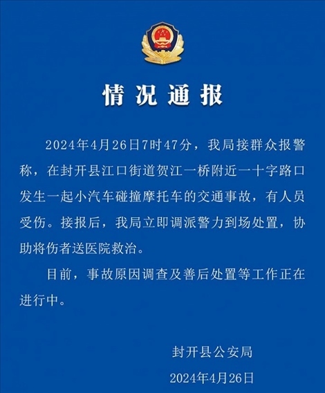 ·廣東封開(kāi)縣警方:一小汽車(chē)沖撞多輛摩托車(chē),有人受傷。