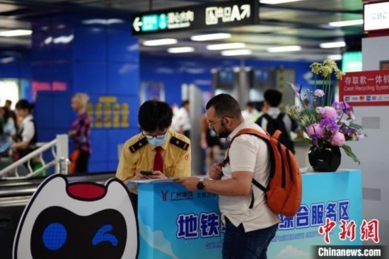廣交會期間,廣州地鐵提供更便捷、多元化的出行保障,包括設(shè)置“綜合服務(wù)區(qū)”,提供現(xiàn)場咨詢、外語翻譯、票務(wù)導(dǎo)購等多元服務(wù)。廣州地鐵集團供圖
