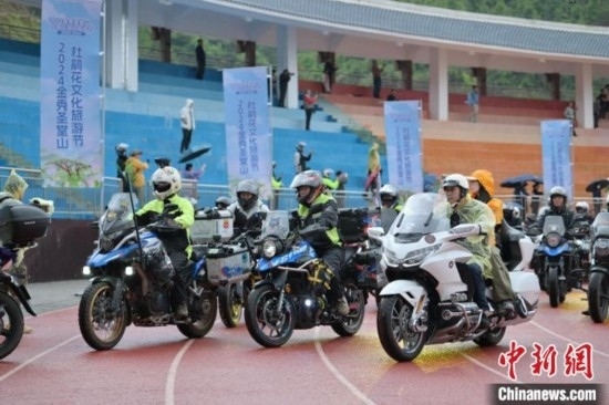 隨后,“5·17”騎行季活動(dòng)將現(xiàn)場(chǎng)氣氛推向高潮。伴隨著發(fā)車儀式的號(hào)令,800余輛機(jī)車轟鳴啟動(dòng),浩浩蕩蕩的車隊(duì)自縣城體育場(chǎng)出發(fā)前往圣堂山。騎行者們?cè)谇嗌骄G水間享受著騎行運(yùn)動(dòng)的樂(lè)趣,感受美麗的杜鵑花海。