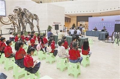 圖①:法官在珍品庫(kù)房為小學(xué)生講解野生動(dòng)物保護(hù)法律知識(shí)。