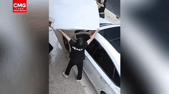 左手臂也砸到同一位置所致“車子被砸出一個(gè)坑不敢想象女孩要是直接摔到上面