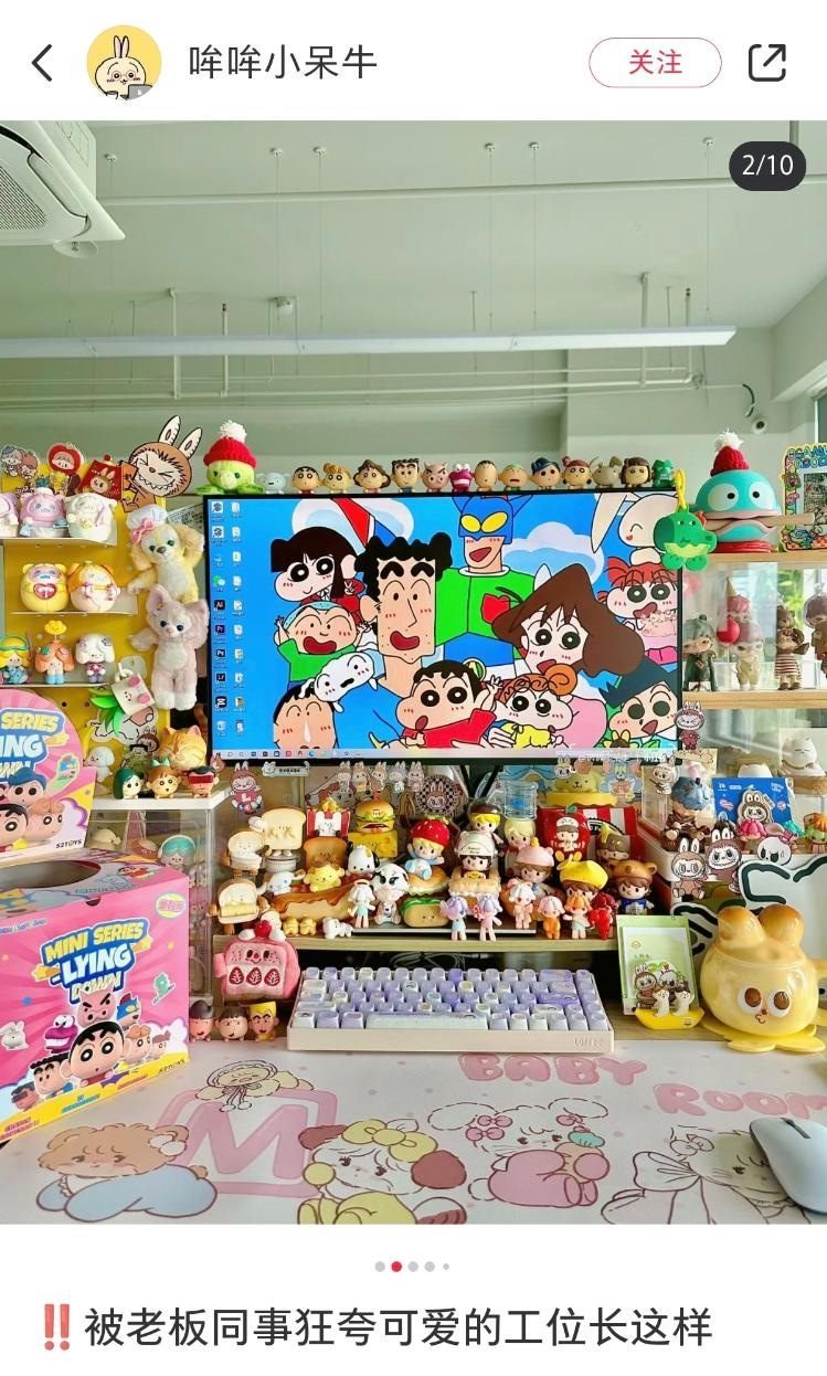 近日,杭州一女生一年內(nèi)花1萬元改造工位引熱議。報道稱小秦因為平時喜歡收集盲盒手辦,所以在工位上也擺滿了潮玩,她回應(yīng)這樣做能提升工作幸福感,“雖然工位是公司的,但快樂是自己的”。隨著很多盲盒的漲價,現(xiàn)在她的工位價值已經(jīng)超過2萬元。