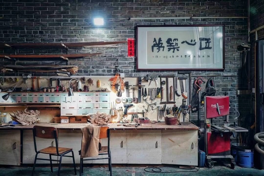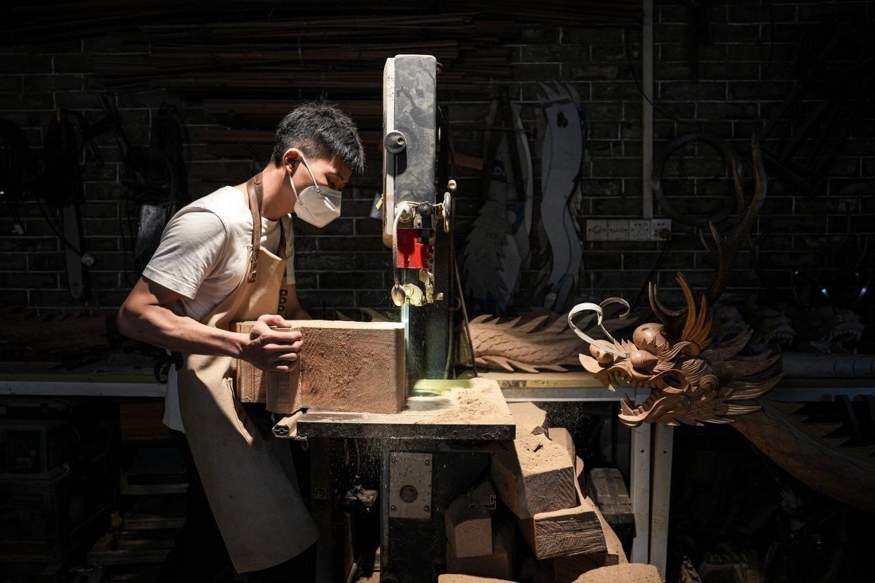 張偉潮身上的傷也沒斷過(guò)?!疤焯旄洞蚪坏?,有時(shí)候傷口剛縫了線,回到家一干活,刀口又開了”,手臂上、手背上遍布的傷疤,見證了每一個(gè)龍頭的誕生。“每下一刀,我都已經(jīng)想好了后面的第二步、第三步”,龍頭雕刻極為考究,從選料、切割,到粗雕、精雕,再到打磨、拋光、裱漆,十幾道繁瑣工序,全靠師傅的眼光和手藝。機(jī)械化、流水線,做不出龍頭嗎?在數(shù)不清的日夜里,光影斑駁間,張偉潮拿著父輩傳下的一刀一錘,一下一下,慢慢開鑿,給出自己的答案。