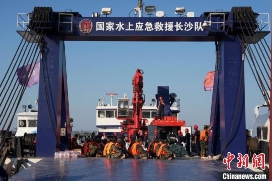 7月6日,救援人員在水上工程救援長沙隊中國應(yīng)急“長沙號”上等待前往潰口處作業(yè)。中新網(wǎng)記者 楊華峰 攝