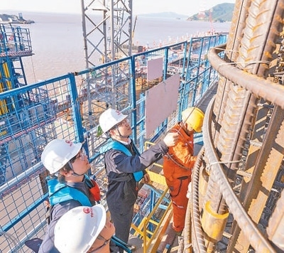 西堠門公鐵兩用大橋墩身施工現(xiàn)場。弋鵬麗攝