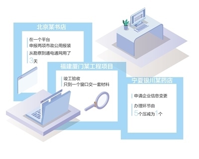 以往,在申請市政公用報裝、工程竣工驗收、企業(yè)信息變更等服務(wù)中,企業(yè)要對接多個政務(wù)服務(wù)窗口或相關(guān)單位,往往提交材料多、耗費時間長。為便利企業(yè)辦事,多地強(qiáng)化線上線下聯(lián)動,開展并聯(lián)審批、聯(lián)合評審、聯(lián)合驗收等,壓減辦理時長和辦事成本。近日,記者采訪北京、福建、寧夏等地的企業(yè)工作人員,呈現(xiàn)他們辦理相關(guān)事項的新體驗。