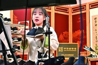 “大柵欄的游客多,每天約4000人來(lái)店光顧,其中有中老年,也有年輕人,還有寶媽帶著‘小不點(diǎn)兒’來(lái)買(mǎi)鞋的?!北本﹥?nèi)聯(lián)升副總經(jīng)理張景環(huán)說(shuō),據(jù)她觀察,不少年輕人如今也有了穿老布鞋的喜好,“我們?cè)诔啥继爬锸装l(fā)了一款跨界聯(lián)名的布鞋,樣子新穎,比較時(shí)尚,一經(jīng)推出便售罄了?!?/p>