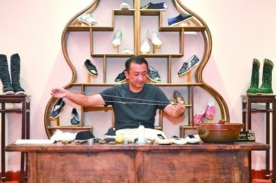 十多年前,26歲的蔡文科拜師學(xué)藝。幾年后,同期學(xué)藝的人陸續(xù)走了,他卻堅(jiān)持了下來(lái)。吃了些苦頭、費(fèi)了些心思,蔡文科出師了,還成為內(nèi)聯(lián)升布鞋非遺傳承人。