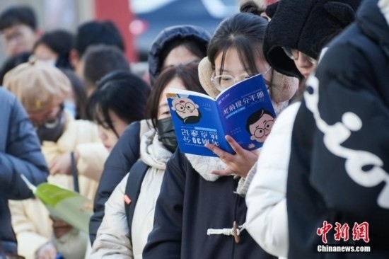 2023年11月26日,山西省太原市,考生在考場(chǎng)外復(fù)習(xí)。當(dāng)日,中央機(jī)關(guān)及其直屬機(jī)構(gòu)2024年度考試錄用公務(wù)員公共科目筆試舉行。中新社記者 武俊杰 攝