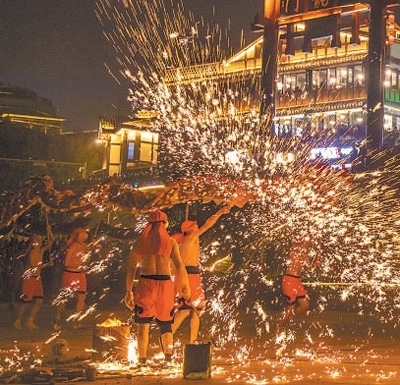 豐富文旅業(yè)態(tài)磁器口古鎮(zhèn)民俗表演。 磁器口古鎮(zhèn)管委會供圖
