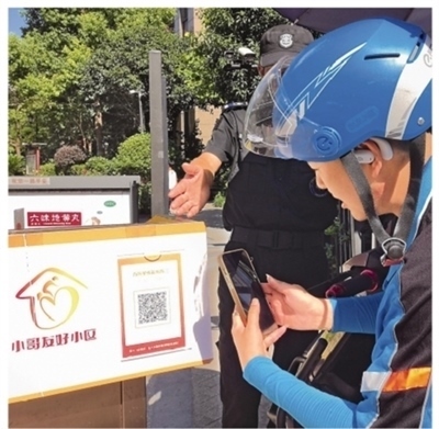 這些小區(qū)大門處張貼專屬二維碼,快遞員、外賣員們只需拿出手機(jī)掃一掃,便可實(shí)現(xiàn)身份認(rèn)證,還可線上查看“小區(qū)地圖”,“一鍵導(dǎo)航”迅速定位送餐送貨樓棟。同時(shí),小區(qū)也可以掌握這些小哥的行動(dòng)軌跡。