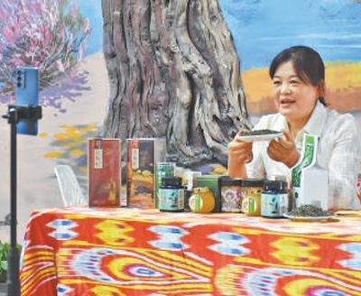 因?yàn)殡娚贪l(fā)展而受益的不只王曉紅。羅布麻茶、羅布麻蜜、尉犁小油馕、庫爾勒香梨、若羌紅棗、昆侖雪菊……走進(jìn)總面積近3000平方米的尉犁縣電商直播基地,100多種優(yōu)質(zhì)農(nóng)特產(chǎn)品整齊排列,不少主播正在直播。