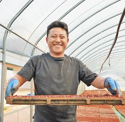 “今年育秧引入了暗室催芽環(huán)節(jié),種子可以快速整齊出苗。預計4月中旬移栽到大田里。”蒙自市農(nóng)業(yè)技術(shù)推廣中心高級農(nóng)藝師楊柳梅是基地項目負責人。她介紹,這次計劃育秧3000余盤,是袁隆平超級雜交水稻的新品種“粒兩優(yōu)8022”。