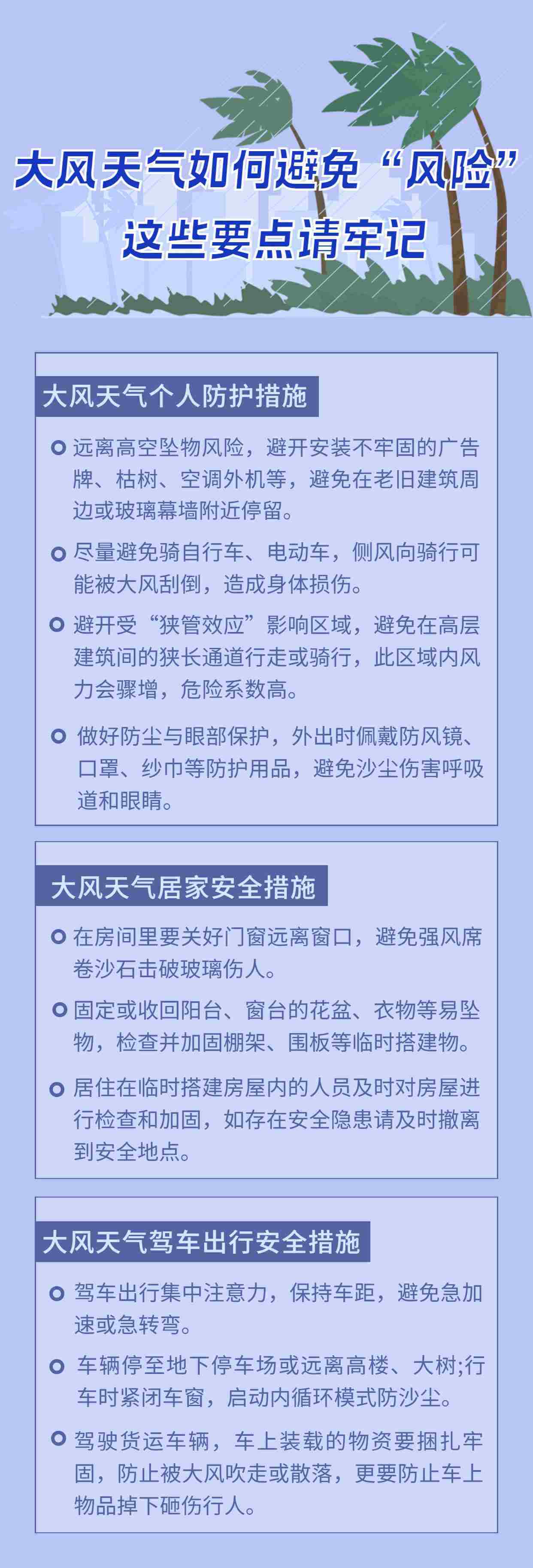 據(jù)氣象部門預(yù)報(bào),未來(lái)幾日,全國(guó)多地將出現(xiàn)強(qiáng)風(fēng)天氣,部分地區(qū)陣風(fēng)風(fēng)力可達(dá)12~13級(jí)。春季到來(lái),大風(fēng)天氣增多,給我們的生活帶來(lái)了諸多安全隱患。該如何做好防范?一起來(lái)了解。