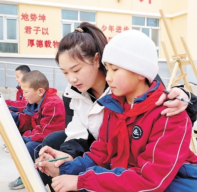 2023年,高潮從山西大同大學美術學院畢業(yè)前,看到了西部計劃的招募信息?!耙ツ敲催h的地方當老師嗎?”高潮有點猶豫。她小時候在鄉(xiāng)村小學讀書,因為老師少,很多課程都開展不起來,“想到自己小時候的經歷,我下定了決心。”