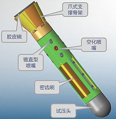 “泵送式可回收管柱內壁除銹工具”示意圖。