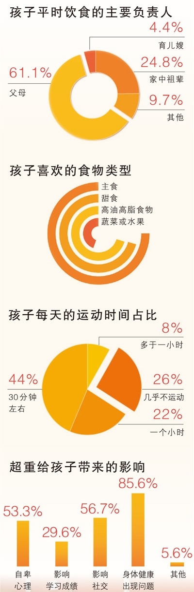 5月19日,人民日?qǐng)?bào)健康客戶端聯(lián)合全國(guó)近30家兒童醫(yī)院開展兒童青少年肥胖現(xiàn)狀調(diào)研,回收的近300份肥胖兒童有效問卷顯示,超重給孩子帶來(lái)了諸多問題,其中身體健康出現(xiàn)問題的比例高達(dá)85.6%,而心理出現(xiàn)問題的比例達(dá)53.3%。