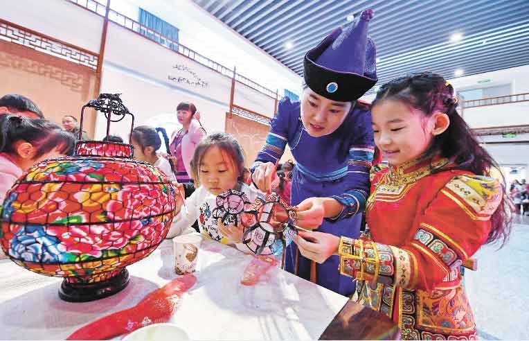 1月15日,小朋友們在非遺年貨展互動體驗(yàn)區(qū)學(xué)習(xí)制作燈籠。當(dāng)日,“非遺過大年文化進(jìn)萬家——2019年全區(qū)非物質(zhì)文化遺產(chǎn)年貨展”在內(nèi)蒙古展覽館舉辦,活動日期為1月15日至24日。本次展覽精選了與傳統(tǒng)年俗有關(guān)的近100個非遺項(xiàng)目進(jìn)行集中展示,旨在推動非物質(zhì)文化遺產(chǎn)創(chuàng)造性轉(zhuǎn)化、創(chuàng)新性發(fā)展,促進(jìn)文化脫貧攻堅,傳承和弘揚(yáng)民族優(yōu)秀傳統(tǒng)文化,將非遺融入傳統(tǒng)新春佳節(jié),讓記憶里的濃濃年味在非遺傳統(tǒng)中鮮活起來。(內(nèi)蒙古日報社融媒體記者 王磊攝)