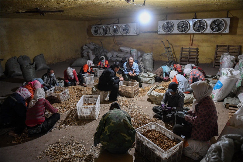 5月14日,村民在內蒙古赤峰市松山區(qū)大廟鎮(zhèn)小廟子村中藥材合作社篩選中藥材。新華社記者劉磊攝