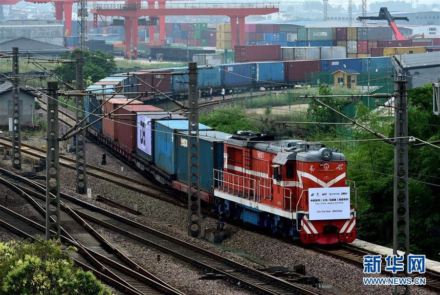 6月5日,滿載防疫物資的“義新歐”中歐班列(義烏-馬德里)在義烏西站啟程,前往西班牙首都馬德里。新華社發(fā)(呂斌攝)