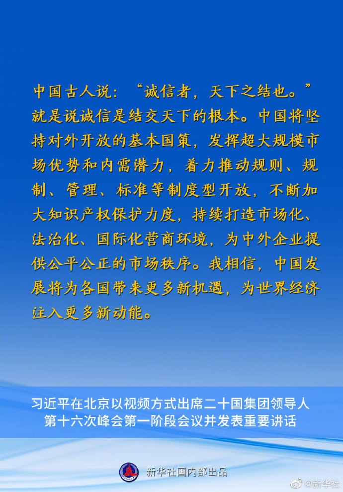 國(guó)家主席習(xí)近平10月30日在北京以視頻方式出席二十國(guó)集團(tuán)領(lǐng)導(dǎo)人第十六次峰會(huì)第一階段會(huì)議并發(fā)表重要講話(huà)。講話(huà)有哪些要點(diǎn),一起來(lái)看↓