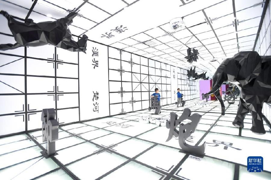 2019年9月21日,小朋友在湖南省長(zhǎng)沙市“字在其中”漢字國(guó)潮藝術(shù)展上參觀(guān)。新華社記者 陳澤國(guó) 攝
