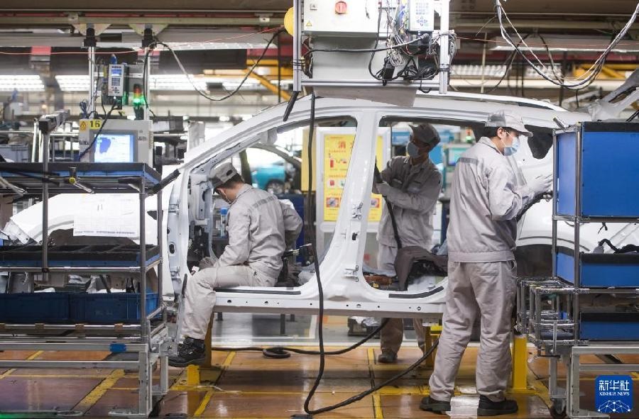 2020年3月24日,工人在湖北武漢東風(fēng)乘用車(chē)公司工廠(chǎng)總裝車(chē)間的流水線(xiàn)上作業(yè)。2020年3月下旬左右,武漢各企業(yè)開(kāi)始陸續(xù)復(fù)工復(fù)產(chǎn)。新華社記者 肖藝九