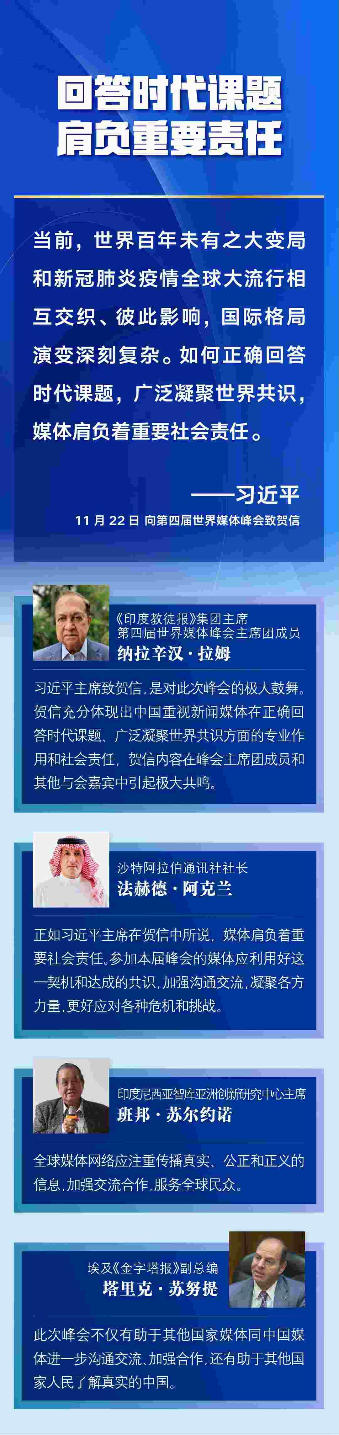 第四屆世界媒體峰會(huì)22日在北京舉行,國家主席習(xí)近平向峰會(huì)致賀信。