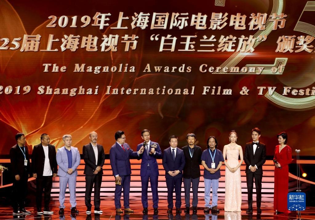 2019年6月14日,第25屆上海電視節(jié)落下帷幕,獲得“最佳中國電視劇”的《大江大河》主創(chuàng)上臺領獎。新華社記者 劉穎/攝