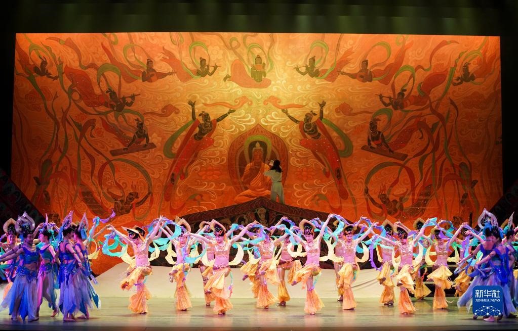 2020年1月9日,在美國紐約林肯劇院,演員在媒體預演上表演《大夢敦煌》片段。新華社記者 王迎/攝