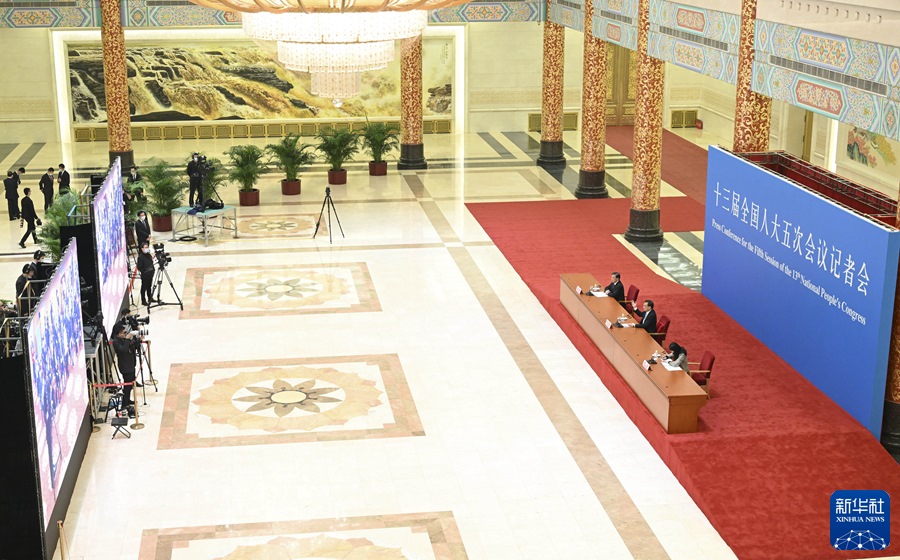 記者會(huì)采用網(wǎng)絡(luò)視頻形式進(jìn)行,主會(huì)場設(shè)在人民大會(huì)堂三樓金色大廳,分會(huì)場設(shè)在梅地亞兩會(huì)新聞中心。記者會(huì)歷時(shí)約130分鐘。