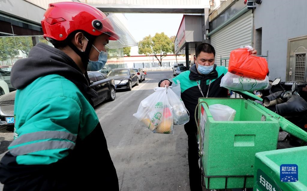 3月15日,吉林省吉林市昌邑區(qū)興華街道中興社區(qū)網(wǎng)格員宋冉為隔離居民運送生活物資。新華社記者 張楠 攝